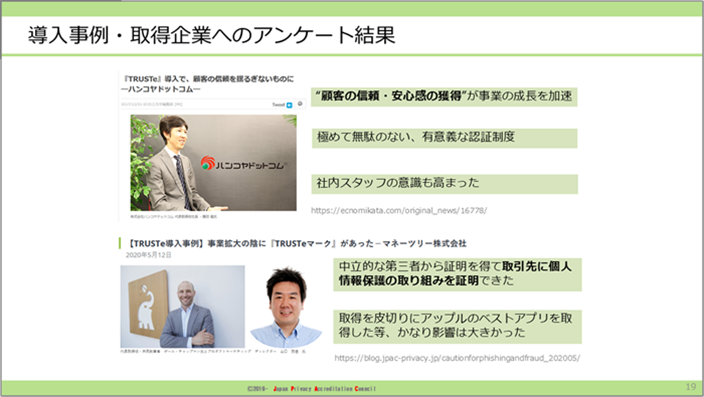 TRUSTeマークの違いについてご説明した上で、当機構が認証付与している